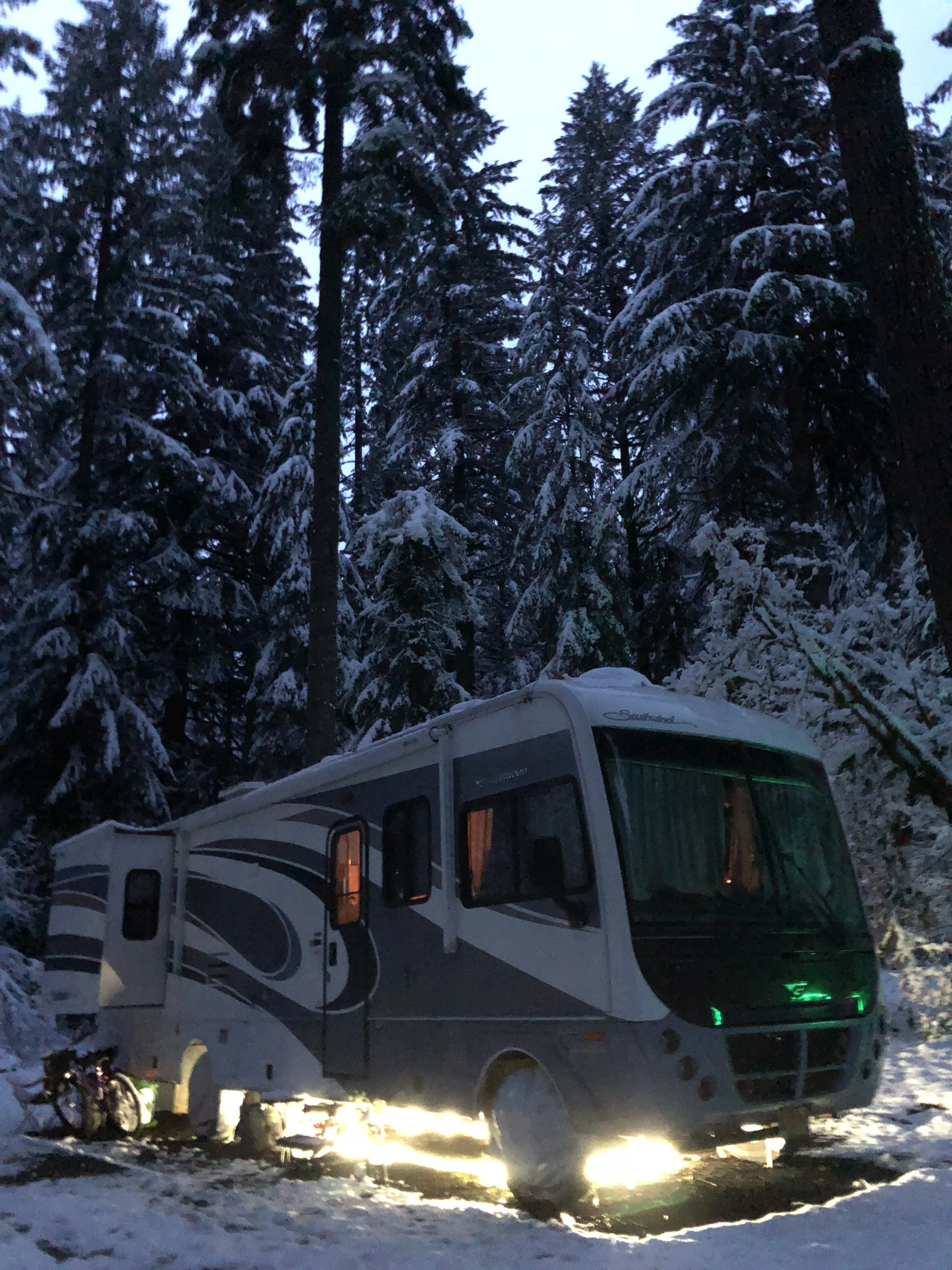 Here we are, 6 months after beginning our RV adventure and we're snowed in. We knew this would be something we had to deal with in Oregon, where we go from 60 degrees to 20 in the same week. It has certainly been a learning experience. With all this extra time indoors, I wanted to share some things we learned along the way. We definitely made some winter camping mistakes, but we learned from these and have managed to stay comfortable and safe in the freezing temperatures.