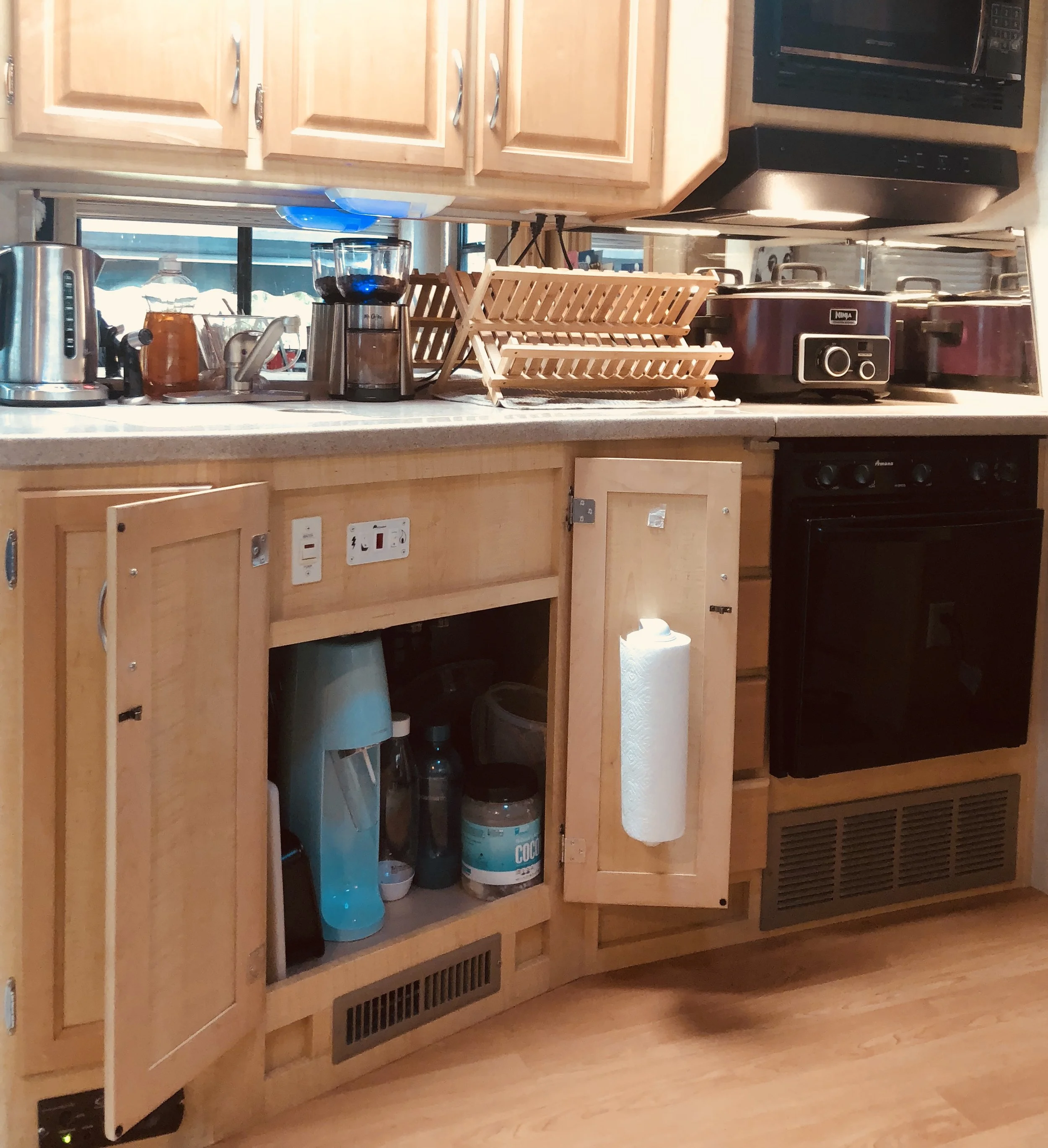This week, I'm going to share the kitchen gadgets we've come to rely on most in the RV. First let me start by saying, I am not a cook. I do cook, but just the simple stuff. My method consists of following recipes, certainly not writing my own. That being said, we only go out to eat once a month at most. Cooking has to be convenient and easy, which isn't always simple in such a small space.